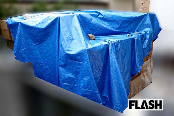 半分ブルーシートを被せただけで野ざらしになっていたマスクだ。